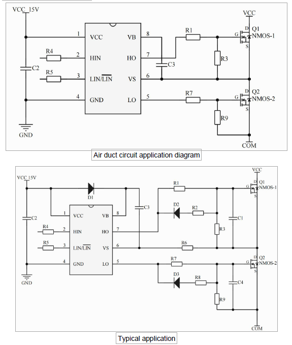 •主要特點(diǎn):集成自舉二極管;為自舉操作設(shè)計(jì)的浮動(dòng)通道;完全工作到+600V;容忍負(fù)瞬態(tài)電壓;v /dt免疫;柵極驅(qū)動(dòng)供電范圍從4.8到20v;欠壓鎖定;3.3V, 5V和15V輸入邏輯兼容;交叉導(dǎo)阻邏輯