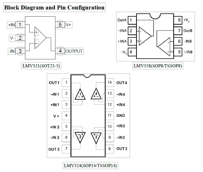 LMV358有SOP8和TSSOP8兩種封裝。LMV324有SOP14和tsssop14兩種封裝。