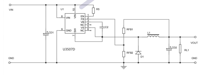•產品描述:U3507D是一個高壓降壓開關穩(wěn)壓器內置MOSFET。它集成了一個高側、高電壓、功率MOSFET,通常電流限制為10A(IPK)。輸入范圍適應各種降壓應用,使其成為汽車,工業(yè)和照明應用的理想選擇。遲滯電壓模式控制采用非??斓捻憫NIU專有的反饋控制方案最大限度地減少了所需外部組件的數(shù)量。開關頻率為150KHz,允許元件尺寸小。熱停機和短路保護(SCP)提供可靠和容錯的操作。低靜態(tài)電流允許U3507D用于電池供電的應用。U3507D采用DFN5*6-10封裝,帶外露襯墊。