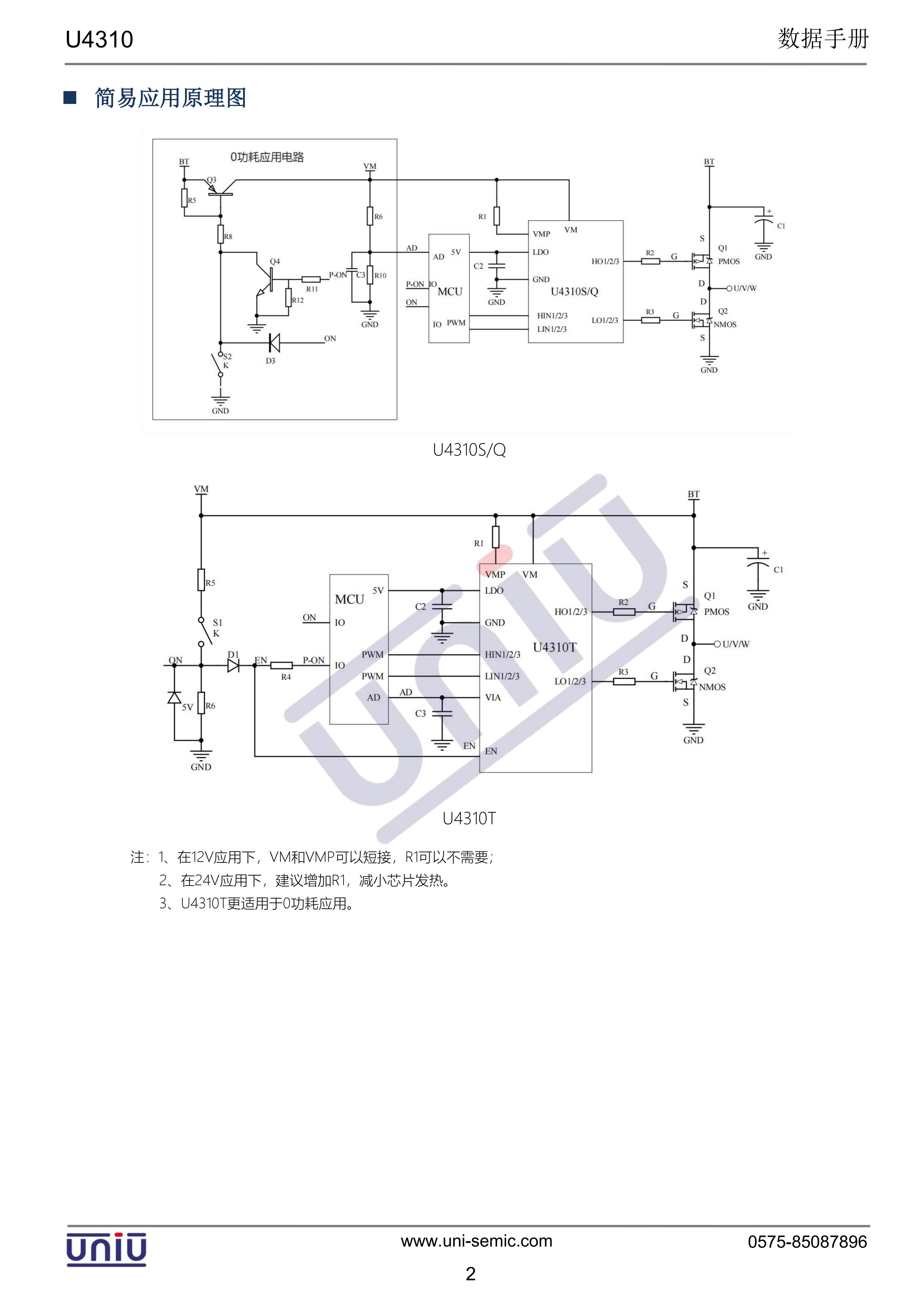 集成EN控制(0功耗):U4310T;集成電壓檢測(10:1):U4310T;VM電壓范圍:5.0-40.0V;驅(qū)動三相P+N獨(dú)立半橋;兼容3.3/5V輸入邏輯;驅(qū)動電流:+400mA/-100mA(typ.);死區(qū)時間:60ns(typ.);集成VM欠壓保護(hù);集成5V LDO;5V LDO集成輸出短路保護(hù);